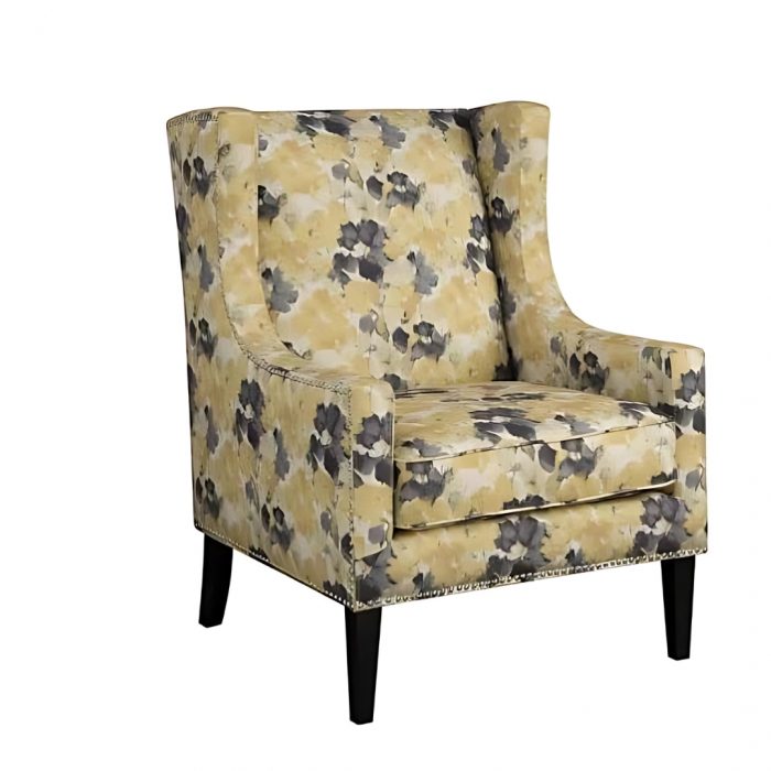 Upgrade your home décor with the Powherbands Floral Upholstered Wingback Accent Chair with Elegance. Designed to bring comfort and sophistication together, this chair features a timeless wingback silhouette, nailhead trim detailing, and a vibrant floral fabric. The yellow and grey tones complement modern, transitional, and classic interiors, making it a versatile statement piece. Whether used in a living room, bedroom, reading nook, or office corner, this accent chair offers both function and style. Its high back and generously cushioned seat ensure lasting comfort while the sturdy wooden legs provide stability and durability. Elegant yet practical, this chair is a must-have for those who want to refresh their interiors with charm and character.